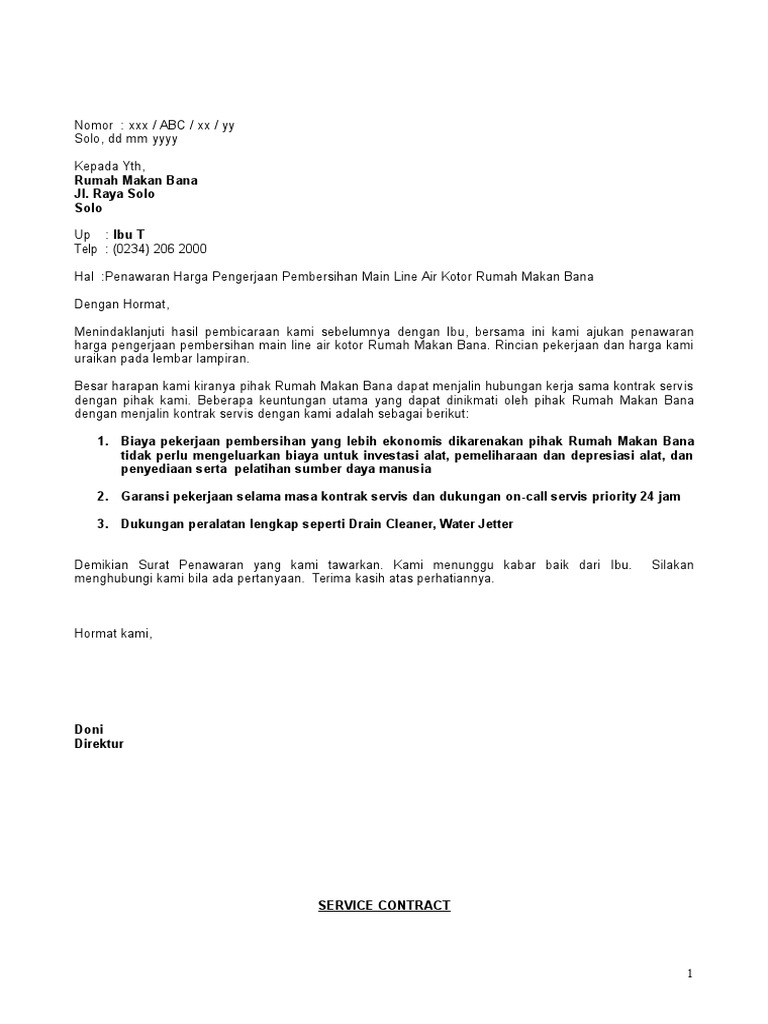 Contoh surat penawaran harga rumah, barang elektronik dan furniture. Kumpulan contoh surat penawaran mulai dari surat penawaran resmi, jasa, barang, kerjasama berserta dengan pengertian dan struktur surat penawaran. Demikian penawaran ini kami sampaikan, untuk lebih lengkapnya terkait materi pelatihan kami yang lain, bisa dilihat di file lampiran. Beberapa contoh surat penawaran kerjasama dengan berbagai macam keperluan, seperti penawaran produk atau jasa, penawaran bisnis, penawaran. Dari beberapa contoh surat penawaran jasa di bawah ini, dapat disimpulkan bahwa surat penawaran produk barang dan jasa sebenarnya tidak jauh berbeda. Seiring dengan perkembangan zaman surat penawaran ini sangat membantu anda dalam pemasaran produk atau salah satu alat untuk mempromosikan. Surat penawaran jasa servis ac. Surat penawaran sendiri adalah surat yang dibuat dengan tujuan untuk menawarkan sesuatu, baik barang. Jenis surat ini tergolong masih merupakan salah satu jenis surat. Untuk pesanan nasi box diatas 50 akan mendapatkan diskon 15% pada akumulasi akhir. Contoh surat penawaran catering by cakdidikk in types > brochures, catering, and surat. Tujuan dibuat surat penawaran ini, supaya jasa atau barang yang anda tawarkan bisa berjalan dengan lancar. Bagi kalian yang belum tahu atau.